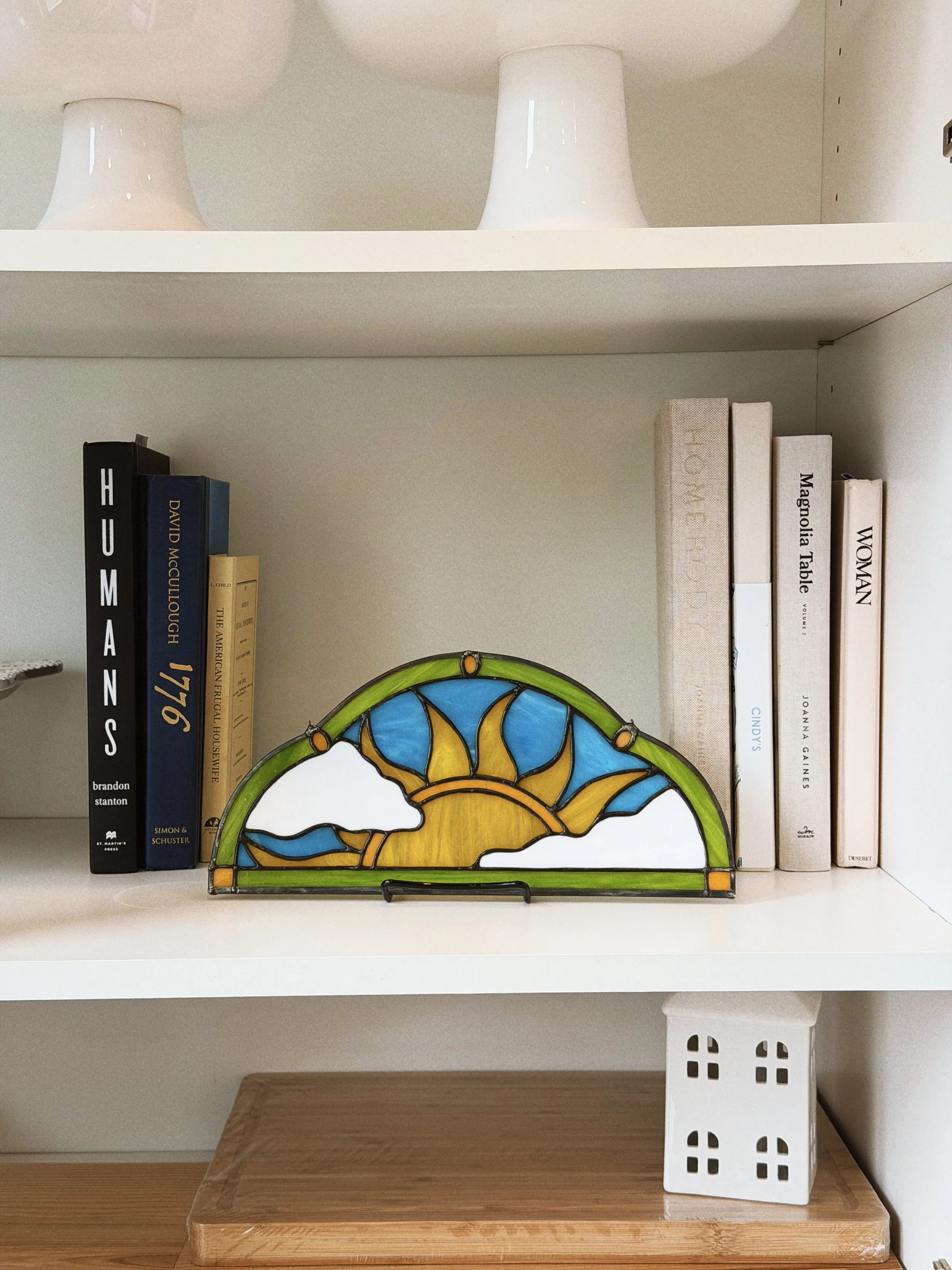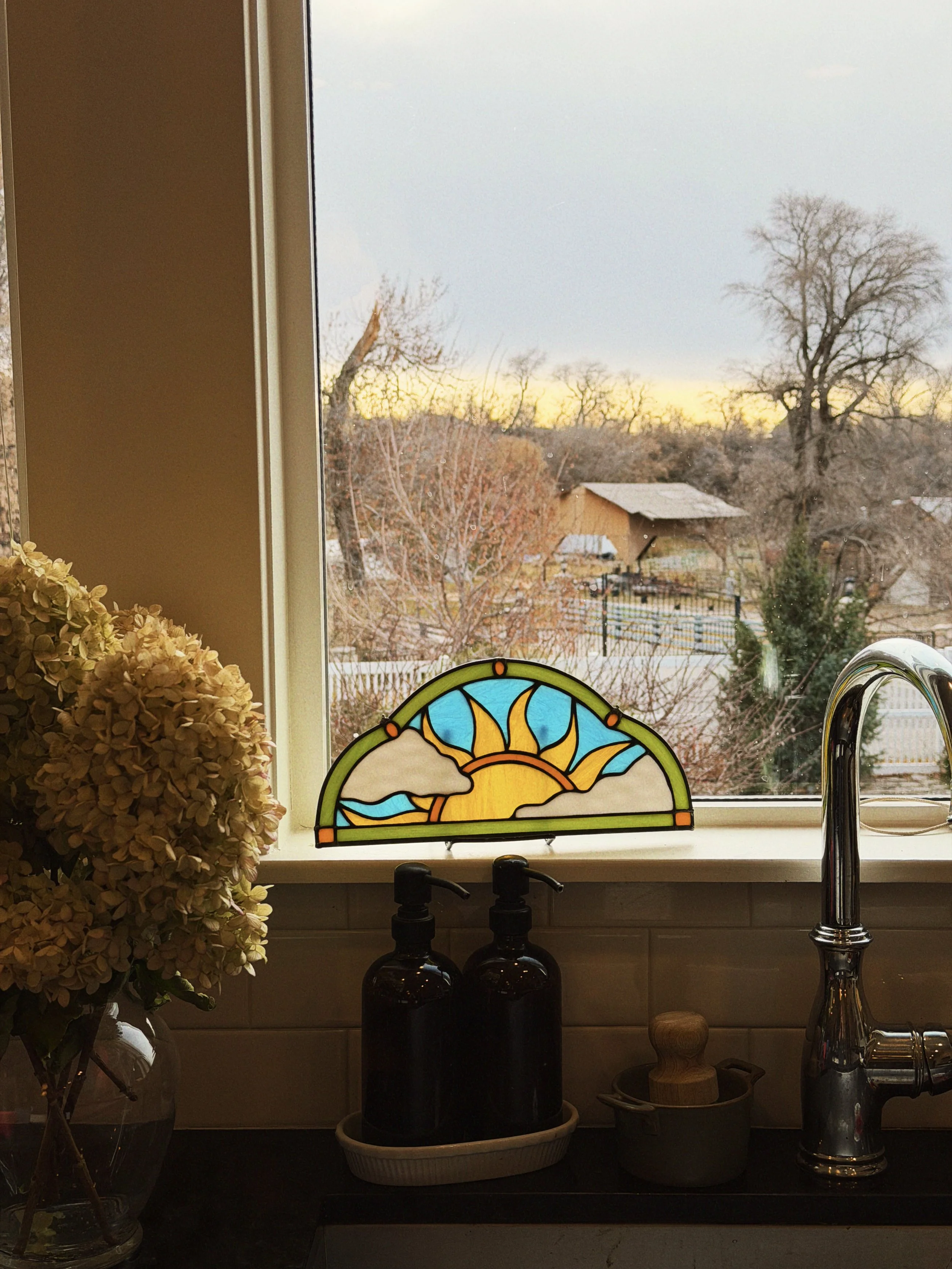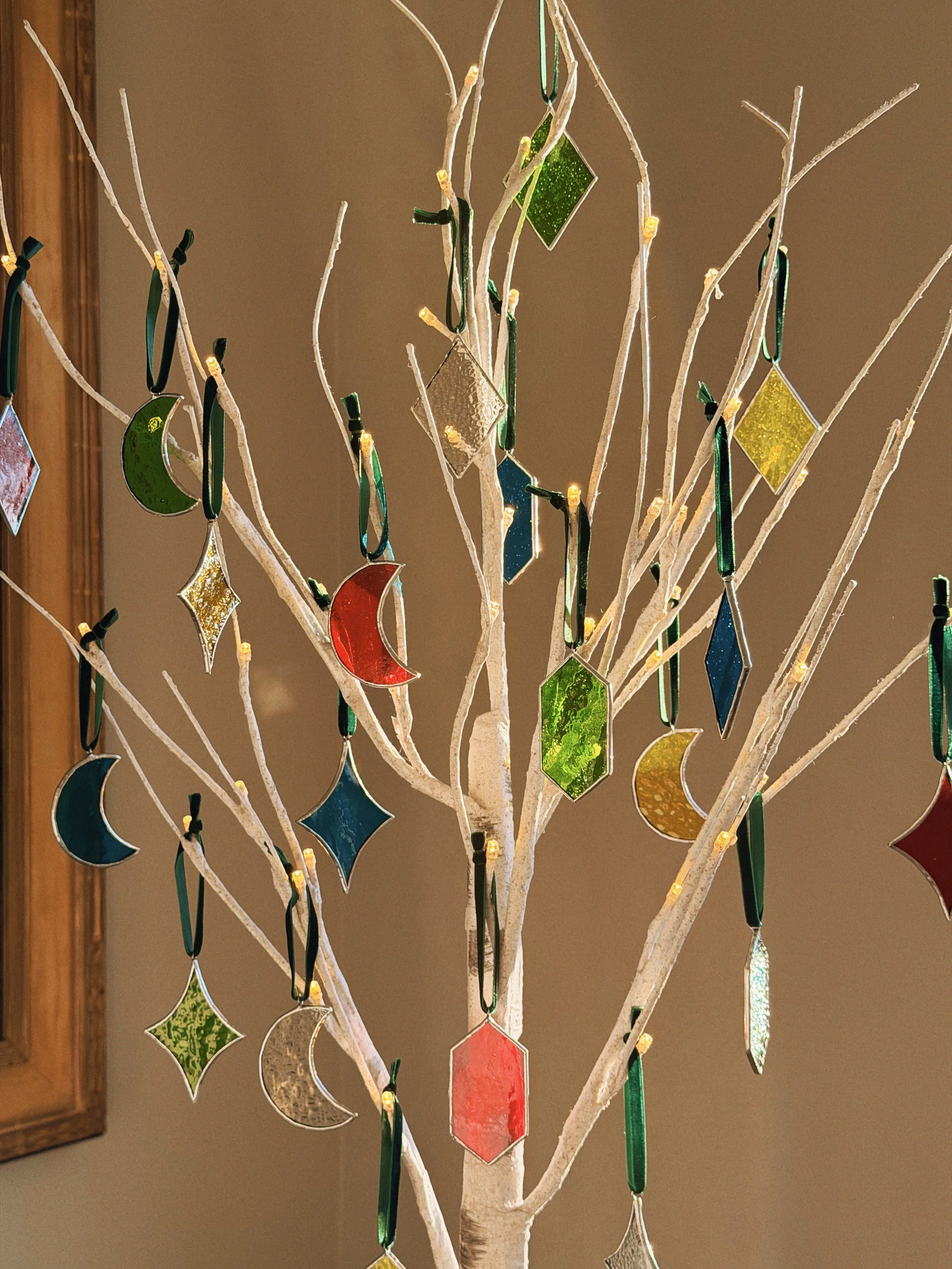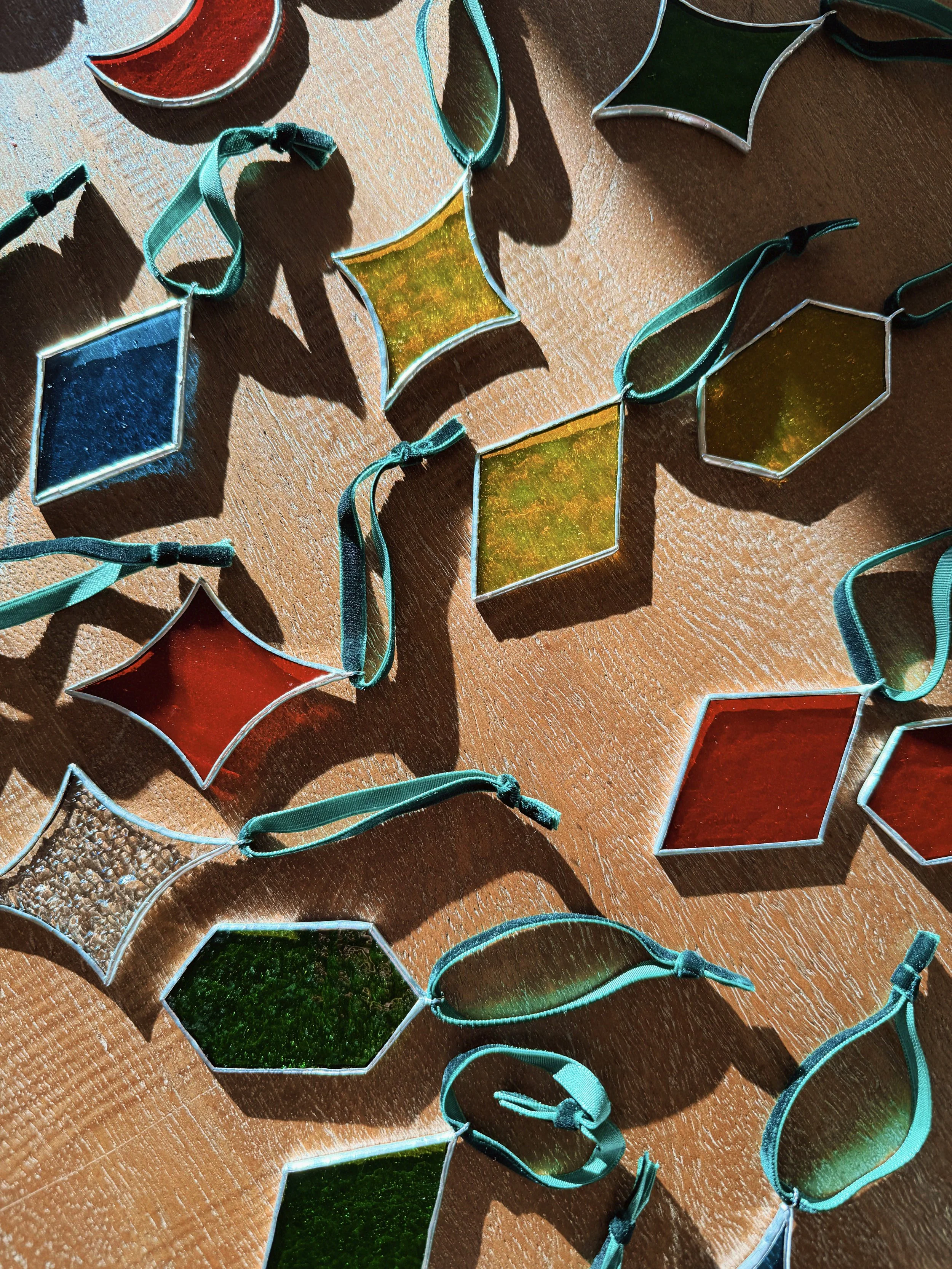 Daisy Chain $200.00 Sun Panel $450.00 Blueberry Panel $250.00 Daisy Suncatcher $75.00 3 Pack of Ornaments $45.00